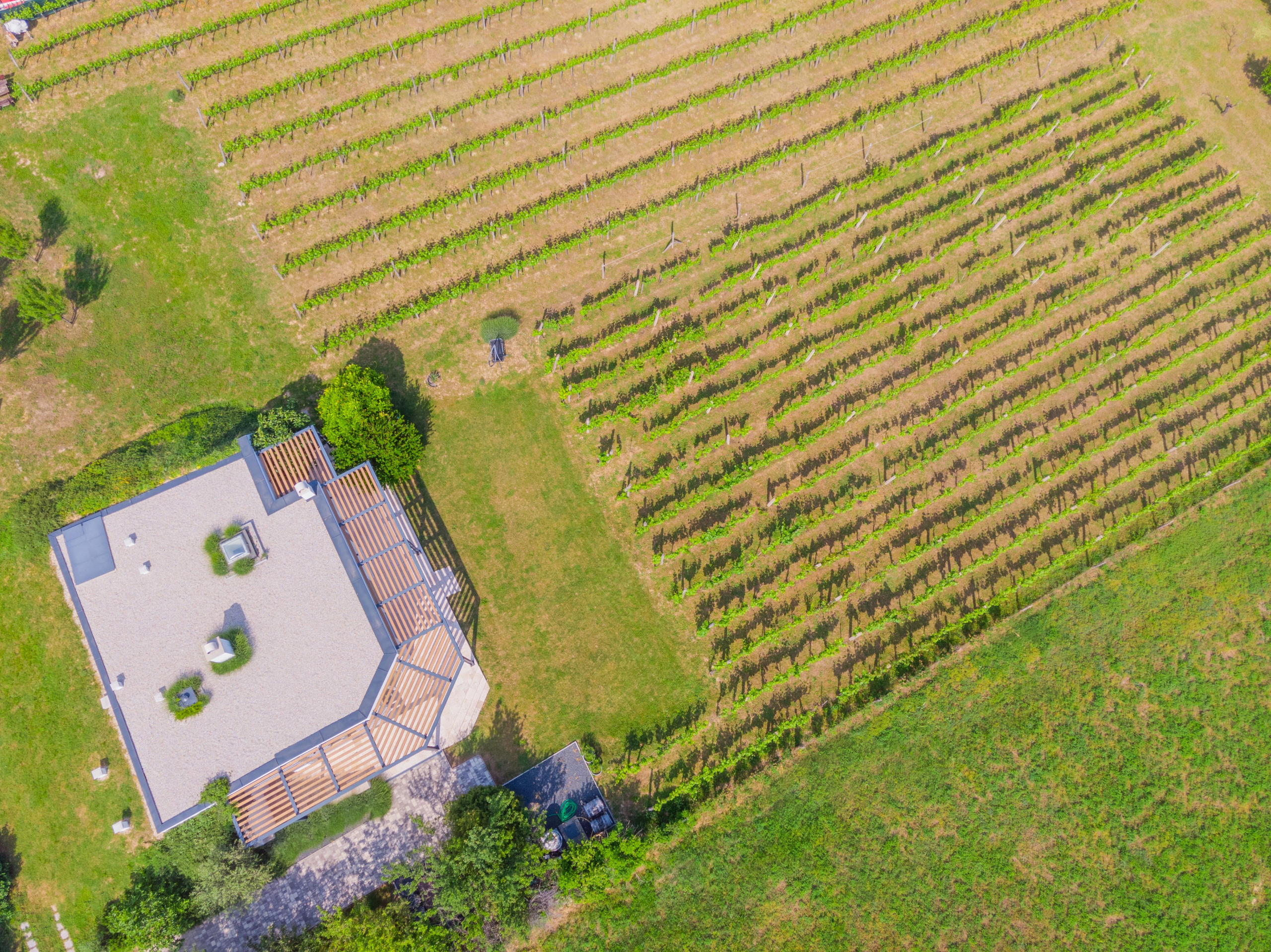 Die bestehenden Weinreben können optional für eigene Weinproduktion genutzt oder entfernt werden – Sie entscheiden über die Nutzung.
