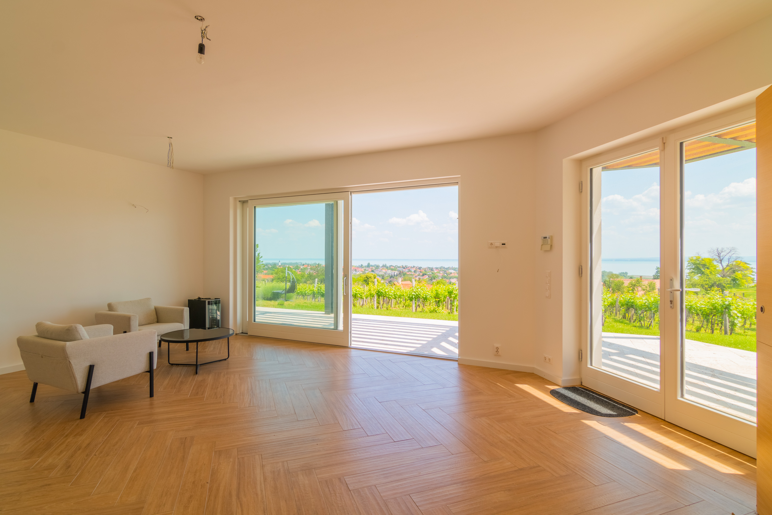 Das Haus befindet sich inmitten eines eigenen Weinbergs – mit einem weiten Panorama-Blick über den Balaton bis hin zur Halbinsel Tihany. Die erhöhte Lage sorgt für ein besonders ruhiges Wohnumfeld und ein unvergleichliches Naturerlebnis.